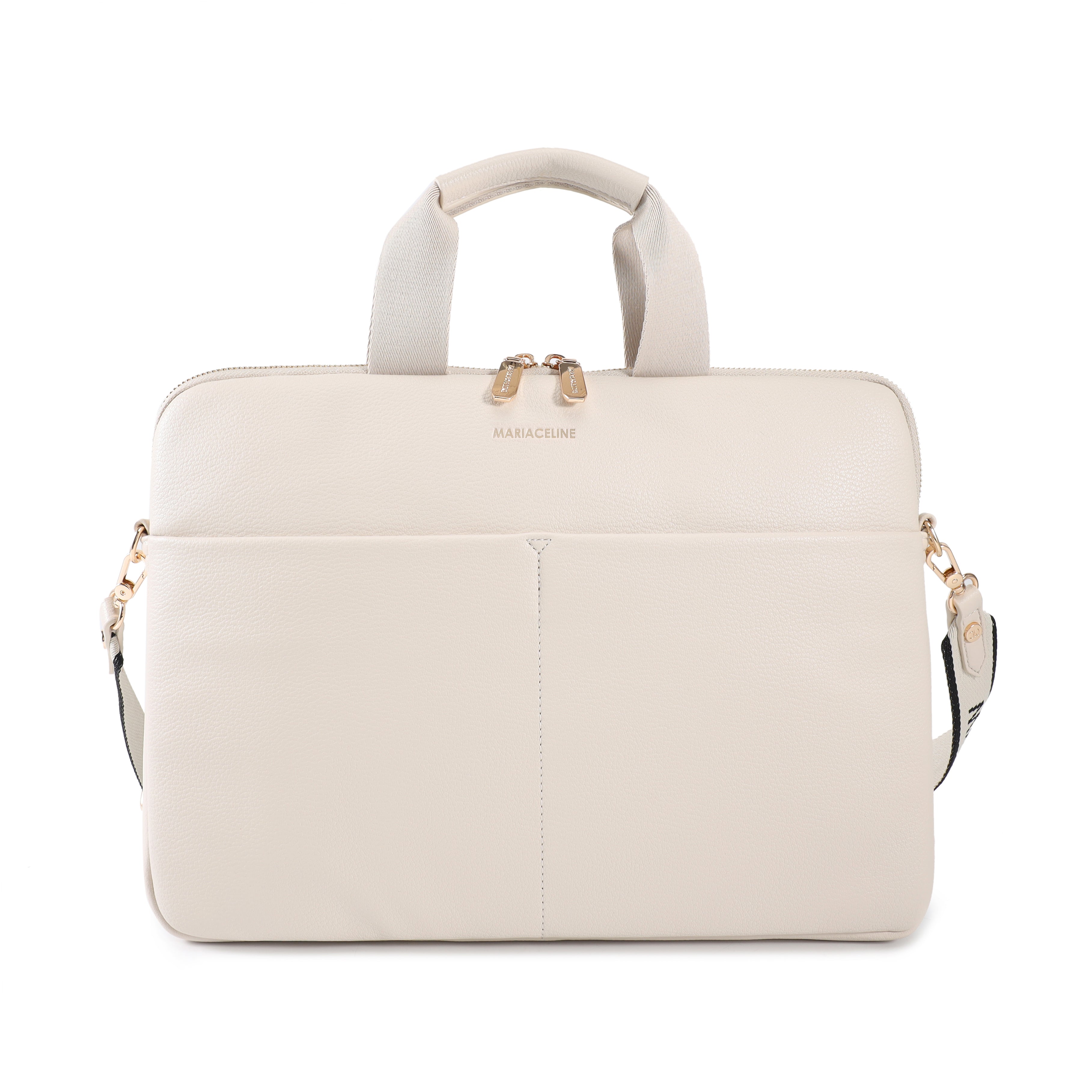 - Borsa per laptop, caratterizzata da un design moderno e sofisticato. Presenta due manici superiori e una tracolla staccabile con il nome del brand stampato, offrendo versatilità nel trasporto. La borsa ha una chiusura con zip e tasche esterne per un facile accesso a piccoli oggetti.